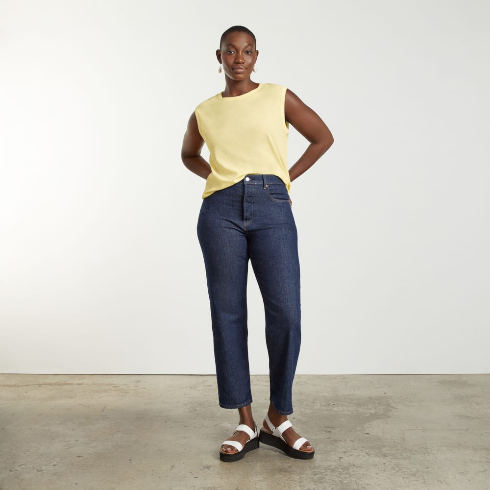 Made of our lightest. most breathable cotton. the Air Muscle Tank is complete with a high curved neckline. shoulder-width sleeves. and a relaxed boxy shape. Consider it your easiest warm-weather layer.