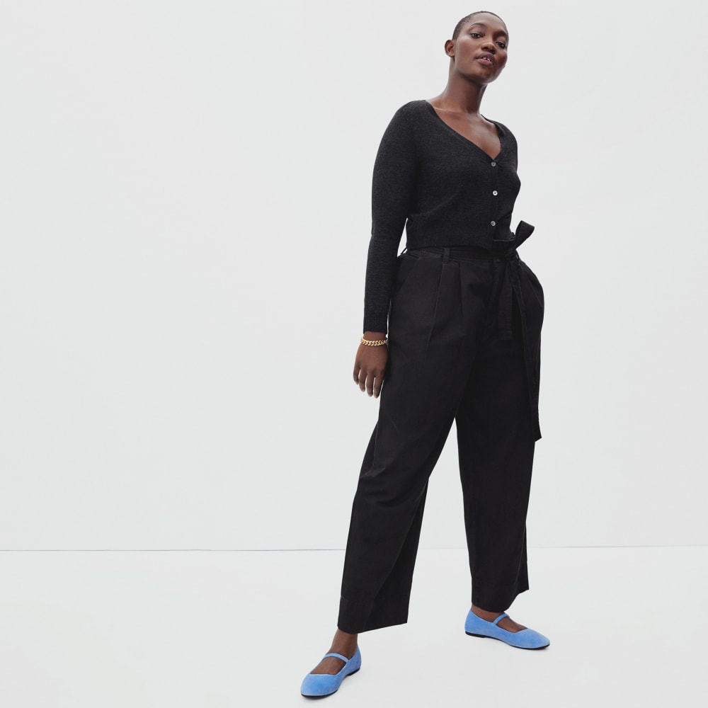 The Featherweight Alpaca Cardigan features a deep V neckline. a clean button front. and a cropped. snug fit. Plus. it’s made of a blend of recycled alpaca. recycled nylon. and merino wool. which gives it a super-soft feel and an extra-light weight. In other words: It’s perfect for now and later.