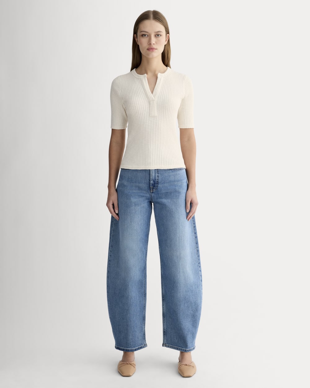 If you’re a sweaterphile but want warmth without the weight. this is the one for you. It features a slim fit. open neck henley. and short sleeves that hit just above the elbow. Made with a soft blend of organic cotton and LENZING? ECOVERO?. wear it solo or layer up with a shirt or cardigan.